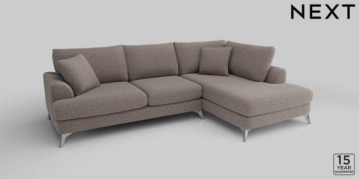 6.10.9 Buy Parker Medium Corner Chaise - Right Hand Chunky Chenille Mink Brown High Metal - Chrome from the Next UK online shop Click here to use our accessible website