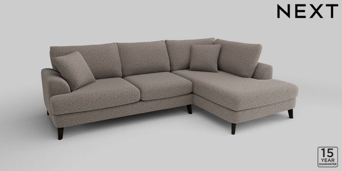 6.10.9 Buy Parker Medium Corner Chaise - Right Hand Chunky Chenille Mink Brown Low Retro Tapered - Dark from the Next UK online shop Click here to use our accessible website