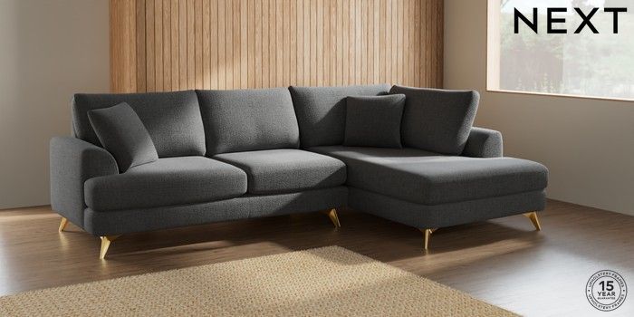 7.2.5 Buy Parker Medium Corner Chaise - Right Hand Chunky Texture Dark Grey High Metal - Brass from the Next UK online shop Click here to use our accessible website
