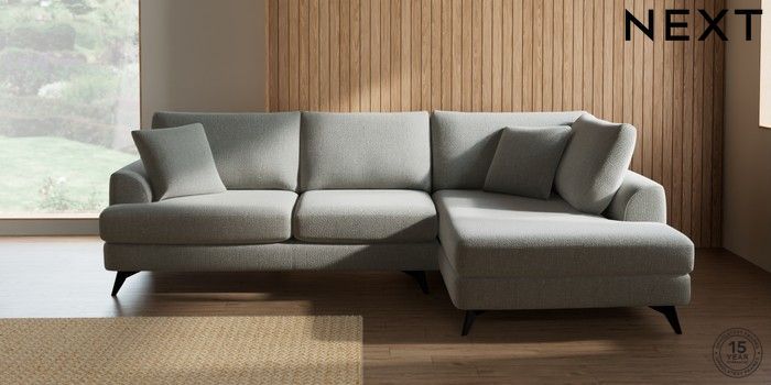 7.2.10 Buy Parker Medium Corner Chaise - Right Hand Chunky Texture Dove High Metal - Black from the Next UK online shop Click here to use our accessible website