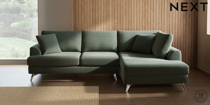 7.2.10 Buy Parker Medium Corner Chaise - Right Hand Chunky Texture Mid Forest Green High Metal - Chrome from the Next UK online shop Click here to use our accessible website