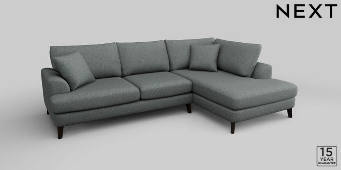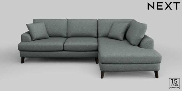6.12.1 Buy Parker Medium Corner Chaise - Right Hand Chunky Weave Mid Grey Low Retro Tapered - Dark from the Next UK online shop Click here to use our accessible website