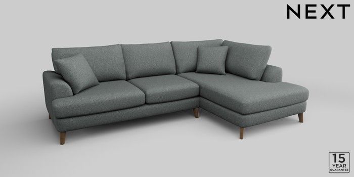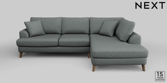 6.12.1 Buy Parker Medium Corner Chaise - Right Hand Chunky Weave Mid Grey Low Retro Tapered - Mid from the Next UK online shop Click here to use our accessible website
