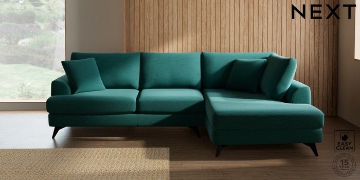 7.2.10 Buy Parker Medium Corner Chaise - Right Hand Fine Chenille Easy Clean Dark Juniper Green High Metal - Black from the Next UK online shop Click here to use our accessible website