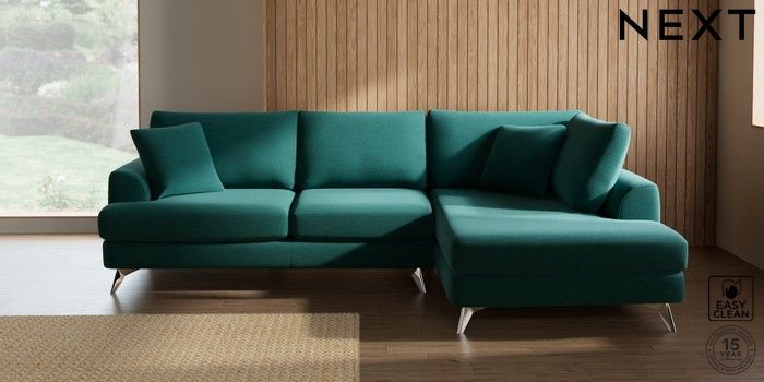 7.2.10 Buy Parker Medium Corner Chaise - Right Hand Fine Chenille Easy Clean Dark Juniper Green High Metal - Chrome from the Next UK online shop Click here to use our accessible website