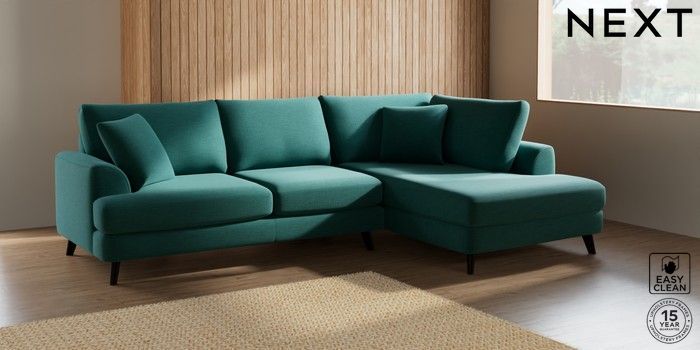 7.2.5 Buy Parker Medium Corner Chaise - Right Hand Fine Chenille Easy Clean Dark Juniper Green Low Retro Tapered - Dark from the Next UK online shop Click here to use our accessible website