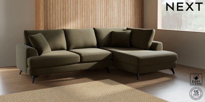 7.2.5 Buy Parker Medium Corner Chaise - Right Hand Fine Chenille Easy Clean Dark Moss Green High Metal - Black from the Next UK online shop Click here to use our accessible website
