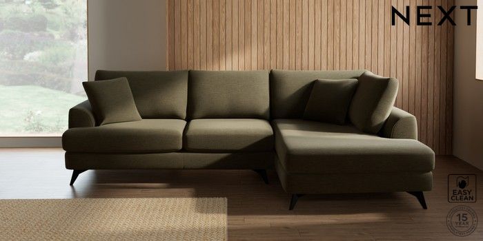7.3.1 Buy Parker Medium Corner Chaise - Right Hand Fine Chenille Easy Clean Dark Moss Green High Metal - Black from the Next UK online shop Click here to use our accessible website