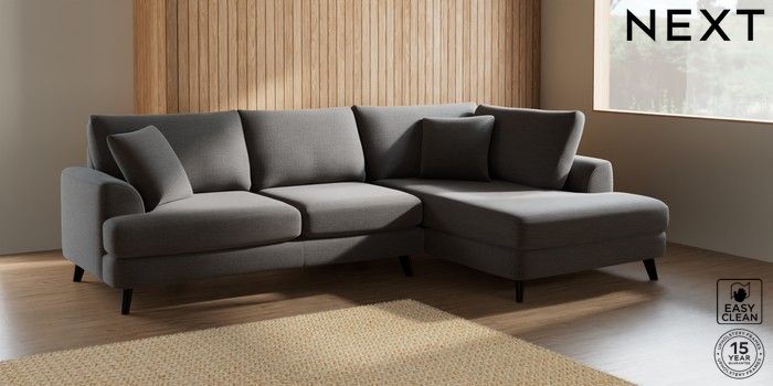 7.2.5 Buy Parker Medium Corner Chaise - Right Hand Fine Chenille Easy Clean Dark Smoke Grey Low Retro Tapered - Dark from the Next UK online shop Click here to use our accessible website