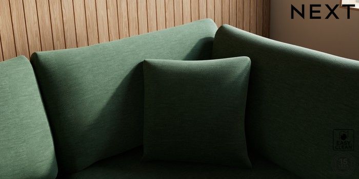 7.3.1 Buy Parker Medium Corner Chaise - Right Hand Fine Chenille Easy Clean Mid Khaki Green Low Retro Tapered - Dark from the Next UK online shop Click here to use our accessible website