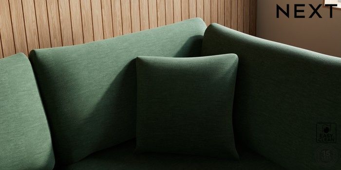 7.3.1 Buy Parker Medium Corner Chaise - Right Hand Fine Chenille Easy Clean Mid Khaki Green Low Retro Tapered - Light from the Next UK online shop Click here to use our accessible website
