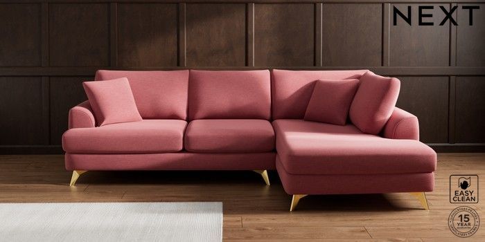 7.2.10 Buy Parker Medium Corner Chaise - Right Hand Fine Chenille Easy Clean Mid Pink High Metal - Brass from the Next UK online shop Click here to use our accessible website