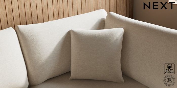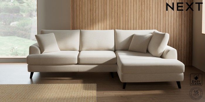7.2.10 Buy Parker Medium Corner Chaise - Right Hand Fine Chenille Easy Clean Oyster Low Retro Tapered - Dark from the Next UK online shop Click here to use our accessible website