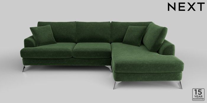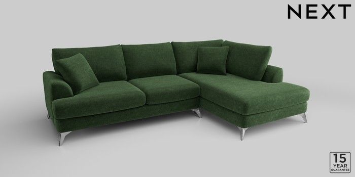 6.11.4 Buy Parker Medium Corner Chaise - Right Hand Luxe Chenille Dark Green High Metal - Chrome from the Next UK online shop Click here to use our accessible website