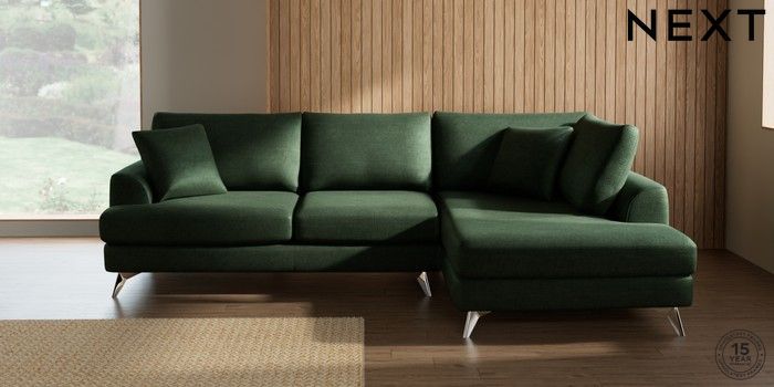 7.2.10 Buy Parker Medium Corner Chaise - Right Hand Luxe Chenille Dark Green High Metal - Chrome from the Next UK online shop Click here to use our accessible website