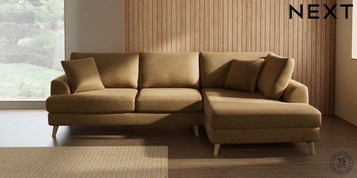 7.0.3 Buy Parker Medium Corner Chaise - Right Hand Luxe Chenille Honey Yellow Low Retro Tapered - Light from the Next UK online shop Click here to use our accessible website