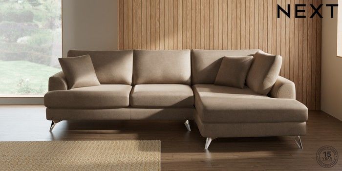 7.2.10 Buy Parker Medium Corner Chaise - Right Hand Luxe Chenille Mid Camel Beige High Metal - Chrome from the Next UK online shop Click here to use our accessible website