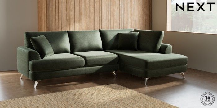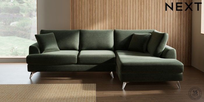 7.0.3 Buy Parker Medium Corner Chaise - Right Hand Luxe Chenille Mid Green High Metal - Chrome from the Next UK online shop Click here to use our accessible website