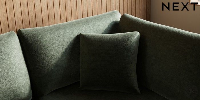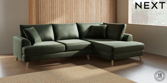 7.0.3 Buy Parker Medium Corner Chaise - Right Hand Luxe Chenille Mid Green Low Retro Tapered - Light from the Next UK online shop Click here to use our accessible website