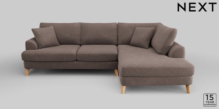 6.12.1 Buy Parker Medium Corner Chaise - Right Hand Luxe Chenille Mink Brown Low Retro Tapered - Light from the Next UK online shop Click here to use our accessible website