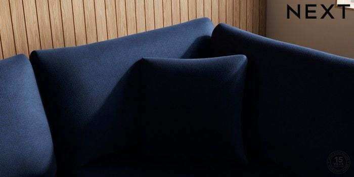 7.2.10 Buy Parker Medium Corner Chaise - Right Hand Luxe Chenille Navy Blue High Metal - Black from the Next UK online shop Click here to use our accessible website