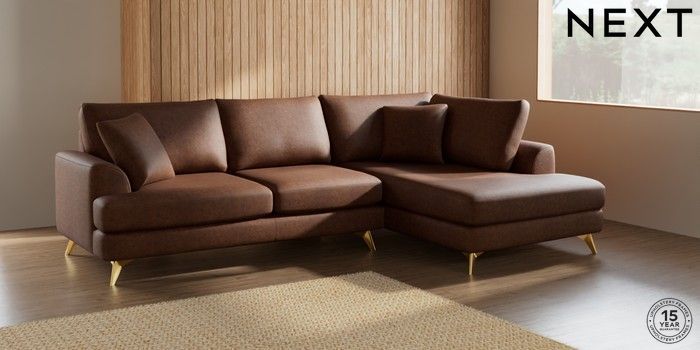 7.2.5 Buy Parker Medium Corner Chaise - Right Hand Monza Faux Leather Easy Clean Chestnut Brown High Metal - Brass from the Next UK online shop Click here to use our accessible website