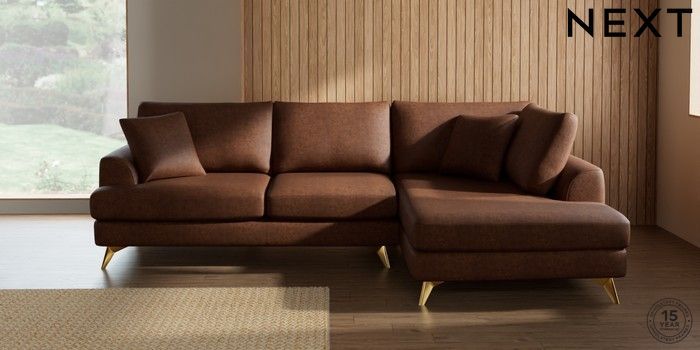 7.3.1 Buy Parker Medium Corner Chaise - Right Hand Monza Faux Leather Easy Clean Chestnut Brown High Metal - Brass from the Next UK online shop Click here to use our accessible website