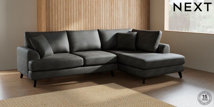 7.2.5 Buy Parker Medium Corner Chaise - Right Hand Monza Faux Leather Easy Clean Dark Grey Low Retro Tapered - Dark from the Next UK online shop Click here to use our accessible website