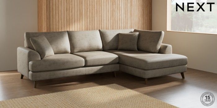 7.2.5 Buy Parker Medium Corner Chaise - Right Hand Monza Faux Leather Easy Clean Mink Brown Low Retro Tapered - Mid from the Next UK online shop Click here to use our accessible website