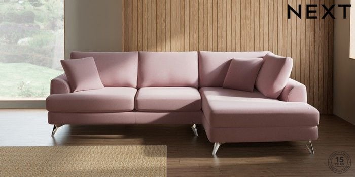 7.3.1 Buy Parker Medium Corner Chaise - Right Hand Natural Mix Light Rose Pink High Metal - Chrome from the Next UK online shop Click here to use our accessible website