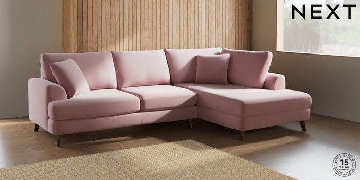 7.2.5 Buy Parker Medium Corner Chaise - Right Hand Natural Mix Light Rose Pink Low Retro Tapered - Mid from the Next UK online shop Click here to use our accessible website