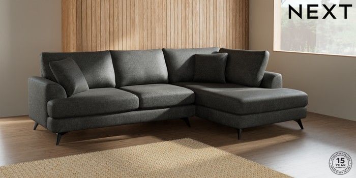 7.2.5 Buy Parker Medium Corner Chaise - Right Hand Plush Chenille Dark Grey High Metal - Black from the Next UK online shop Click here to use our accessible website