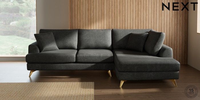 7.2.10 Buy Parker Medium Corner Chaise - Right Hand Plush Chenille Dark Grey High Metal - Brass from the Next UK online shop Click here to use our accessible website