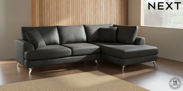 7.2.5 Buy Parker Medium Corner Chaise - Right Hand Plush Chenille Dark Grey High Metal - Chrome from the Next UK online shop Click here to use our accessible website