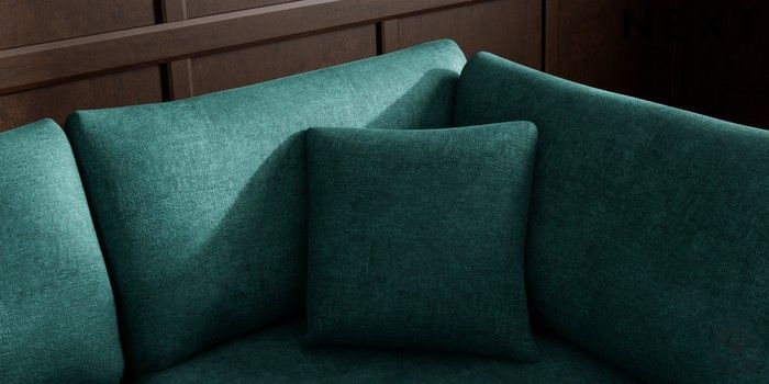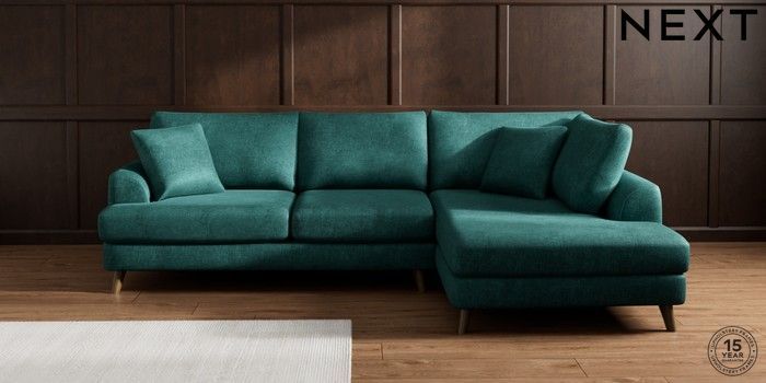 7.2.4 Buy Parker Medium Corner Chaise - Right Hand Plush Chenille Dark Teal Green Low Retro Tapered - Mid from the Next UK online shop Click here to use our accessible website