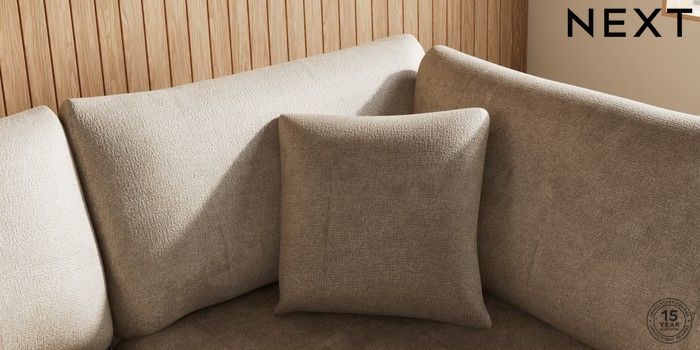 7.2.10 Buy Parker Medium Corner Chaise - Right Hand Plush Chenille Light Natural High Metal - Black from the Next UK online shop Click here to use our accessible website