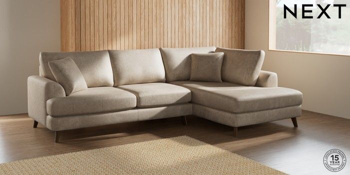 7.0.3 Buy Parker Medium Corner Chaise - Right Hand Plush Chenille Light Natural Low Retro Tapered - Mid from the Next UK online shop Click here to use our accessible website