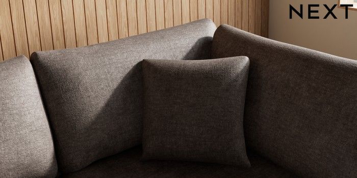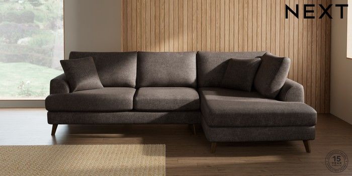 7.2.10 Buy Parker Medium Corner Chaise - Right Hand Plush Chenille Mink Brown Low Retro Tapered - Mid from the Next UK online shop Click here to use our accessible website