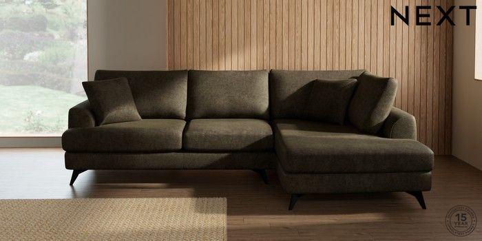 7.2.10 Buy Parker Medium Corner Chaise - Right Hand Plush Chenille Moss Green High Metal - Black from the Next UK online shop Click here to use our accessible website
