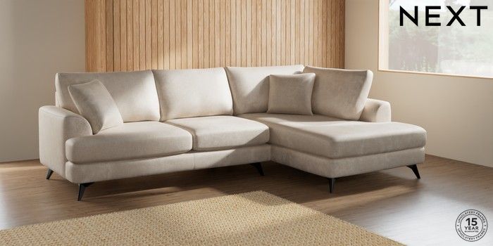 7.2.5 Buy Parker Medium Corner Chaise - Right Hand Plush Chenille Oyster High Metal - Black from the Next UK online shop Click here to use our accessible website