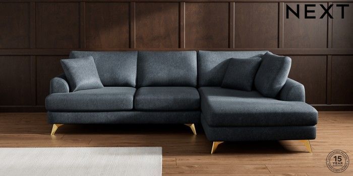 7.2.10 Buy Parker Medium Corner Chaise - Right Hand Plush Chenille Slate Blue High Metal - Brass from the Next UK online shop Click here to use our accessible website