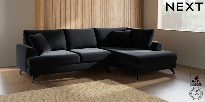 7.2.5 Buy Parker Medium Corner Chaise - Right Hand Plush Velvet Easy Clean Charcoal Grey High Metal - Black from the Next UK online shop Click here to use our accessible website