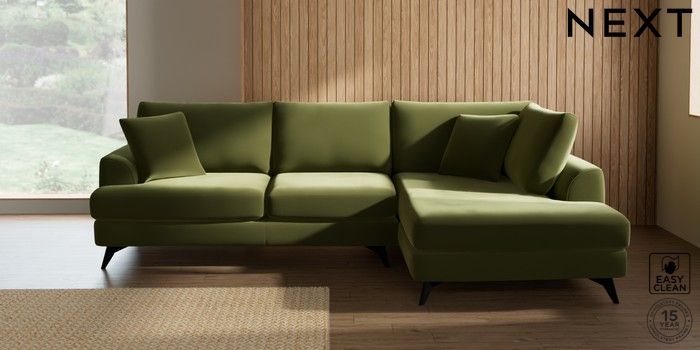 7.3.1 Buy Parker Medium Corner Chaise - Right Hand Plush Velvet Easy Clean Mid Olive Green High Metal - Black from the Next UK online shop Click here to use our accessible website