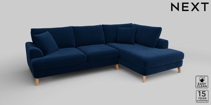 6.12.1 Buy Parker Medium Corner Chaise - Right Hand Plush Velvet Easy Clean Navy Blue Low Retro Tapered - Light from the Next UK online shop Click here to use our accessible website