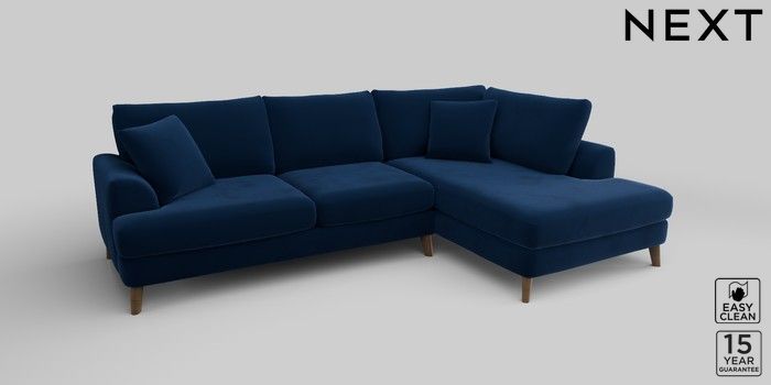 6.12.1 Buy Parker Medium Corner Chaise - Right Hand Plush Velvet Easy Clean Navy Blue Low Retro Tapered - Mid from the Next UK online shop Click here to use our accessible website