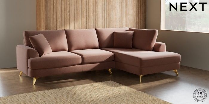 7.2.5 Buy Parker Medium Corner Chaise - Right Hand Relaxed Linen Look Light Rust Brown High Metal - Brass from the Next UK online shop Click here to use our accessible website