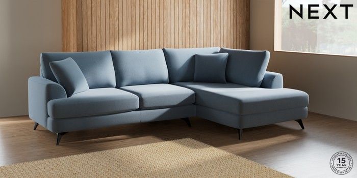 7.2.5 Buy Parker Medium Corner Chaise - Right Hand Relaxed Linen Look Mid Blue High Metal - Black from the Next UK online shop Click here to use our accessible website
