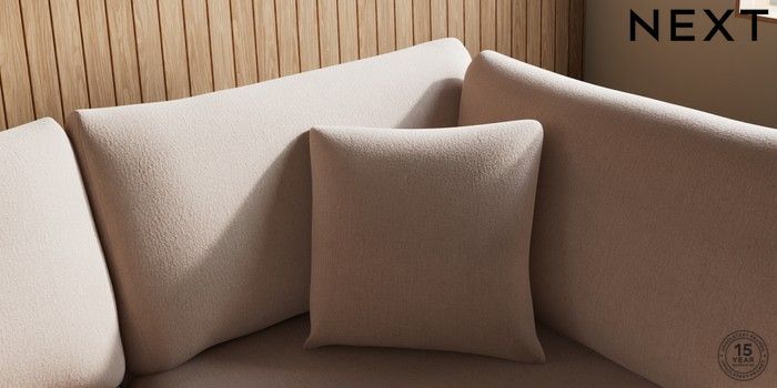 7.3.1 Buy Parker Medium Corner Chaise - Right Hand Relaxed Linen Look Mid Natural High Metal - Brass from the Next UK online shop Click here to use our accessible website