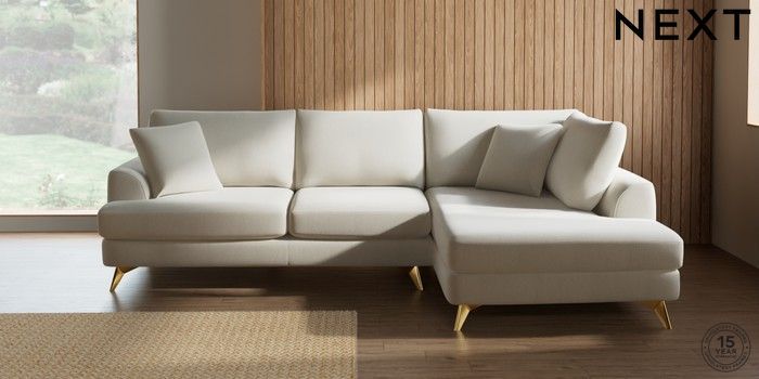 7.3.1 Buy Parker Medium Corner Chaise - Right Hand Relaxed Linen Look Oyster High Metal - Brass from the Next UK online shop Click here to use our accessible website