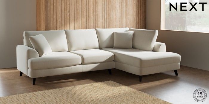 7.2.5 Buy Parker Medium Corner Chaise - Right Hand Relaxed Linen Look Oyster Low Retro Tapered - Dark from the Next UK online shop Click here to use our accessible website